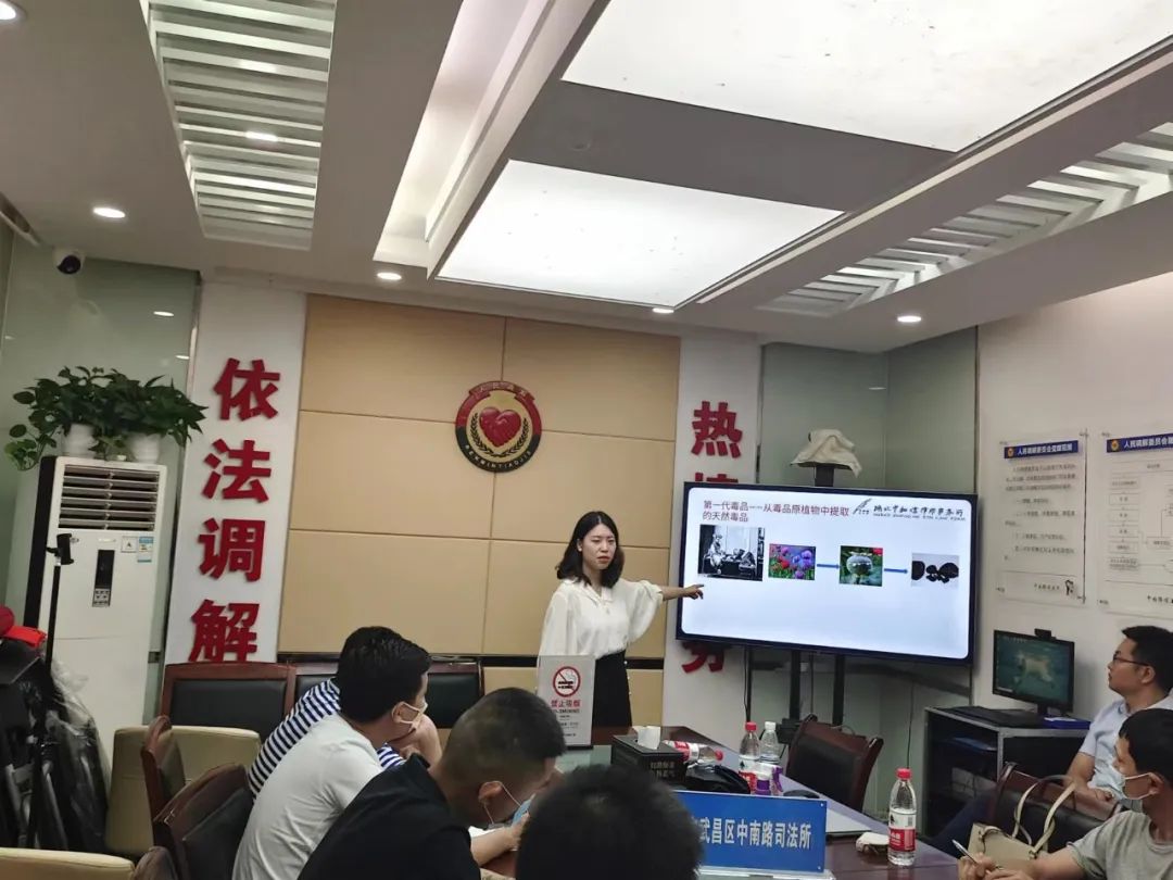 “珍爱生命远离毒品”是经久不衰的宣传口号,“如何成为建设禁毒屏障的一股力量”无疑是此次宣讲活动的一大重要主题。司法所作为面向广大人民群众的基层司法行政机关,是禁毒宣传的前沿阵地,宣讲活动得到中南路司法所刘婷婷所长的大力支持。青委会主任徐小明律师以代取快递、代运行李、陪朋友接车等生活中的日常小事开篇切入,通过具体案例讲述了日常行为中蕴藏的涉毒风险。“交友需谨慎,留心处处皆风险,不经意间的行为可能被犯罪分子利用而带来牢狱之灾。”他告诫旁听的人员。接着,王晶律师以武汉市范围内的吸食毒品违法案例、毒品犯罪案例,对三代毒品的特点、成瘾原因、戒断综合征及吸食毒品对个人、家庭与社会的严重危害展开了深入的演讲,最后特别提醒大家千万不要“一日吸毒,终身戒毒”。旁听的社区矫正人员纷纷拿出笔记本,记录下毒品的危害与涉毒犯罪的严重后果,也将宣讲的内容深深地记在了心里。顺应新时代的发展,宣传团队袁和平、张倩倩两位律师在南湖社区开展了一次线上、线下双重方式的禁毒宣讲活动,并在线下宣讲现场分发禁毒宣传手册。南湖街道党工委副书记黄秋莉、办事处副主任冯建忠、武汉市公安局武昌区分局缉毒大队、南湖街平安建设办、南湖街派出所、司法所等单位均派代表参加,线上线下社区居民共计100余人聆听讲座,现场共计分发50余份禁毒宣传手册。此次宣讲面向街道群众及各单位负责人员,以毒品的分类、危害后果以及犯罪预防三方面为重点纲要,穿插毒品犯罪的真实案例,让广大居民深切地认识到了毒品犯罪与我们日常生活的距离之近、打击毒品犯罪的形势之严峻。居民田大妈听完讲座说:“张律师讲的内容让人印象深刻,特别是吸毒前后的照片对比让人震撼,我要把她发的宣传册带回去给邻居们看看。”资深律师袁和平律师积极联系社区,促成了此次宣传活动,达到了良好的宣传推广效果。两位律师带去的50余份宣传手册发放完毕后,仍有不少居民围着他们要宣传册回家看。密封完好的样品整齐地排列在展览架上,醒目的宣传标语列在左右,花样繁多的样品色彩明丽,吸引众多行人驻足,细看下却是令人生畏。在光谷APP广场上,我所宣传团队与关东街禁毒委、关东派出所联合举办了此次别开生面的禁毒主题宣传。当色彩明艳的“展品”摆在你面前,你是否能够意识到这是那无休止地荼毒人们身体健康的万恶的毒品?为便于解答行人疑问,活动现场设立法律咨询点,合伙人马力、徐小明、肖湘漓与6位实习生作为本次宣传活动的咨询律师,为大家提供咨询服务,并发放禁毒宣传资料。据统计,现场共解答群众法律咨询50余人次,发放禁毒宣传资料400多份。“你了解日常生活中的毒品吗?”龙卫泽律师将潜藏在生活中的毒品外衣一一剥开,或许是一包果糖、一袋奶茶、一支香烟……揭开新型毒品的真面目,有助于增强人们对毒品的识别和预防能力,降低因不小心而误吸、骗吸的情况出现。宣讲中龙卫泽律师辅以真实案例对刑事、治安管理等相关法律规定进行了解读,加强了大家对毒品相关法律知识的认识。“有毒必肃,贩毒必惩。种毒必究,吸毒必戒”,在这和平的年代,许多“隐秘而伟大”的禁毒英雄为了群众的生命健康而努力奋斗,他们奋勇无畏是为了这世间更美好的明天。